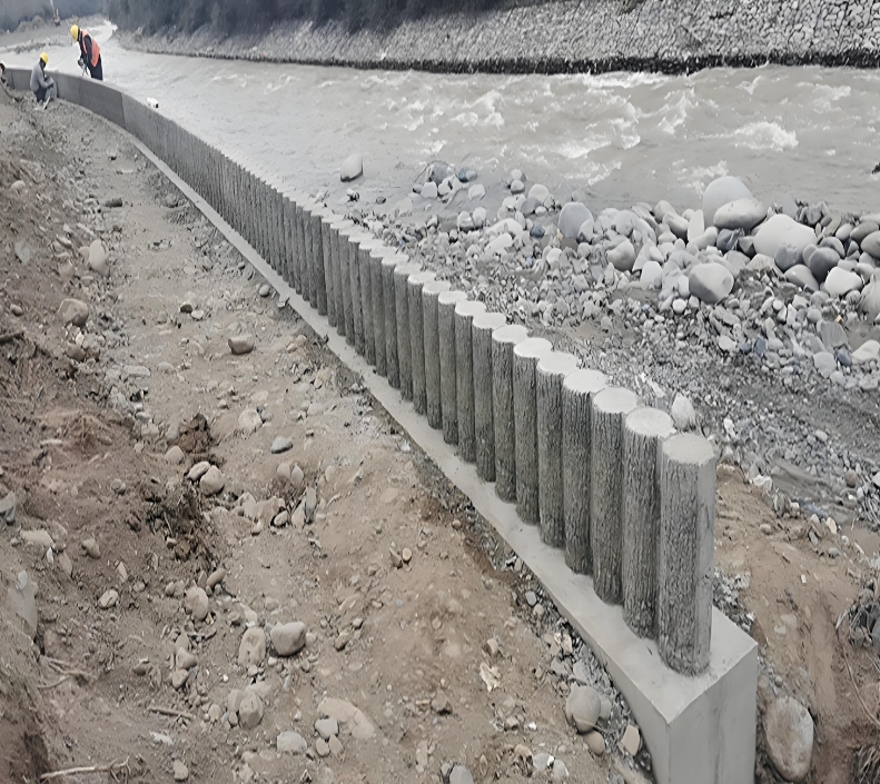 場景一:河道駁岸防護 —— 耐水耐沖,比實木樁省維護